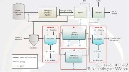 在这个工艺中,真正实现了“低碳、节能、资源化”的目标,废水中的有机物采用厌氧的方式,可以实现沼气资源化、而且运行费用低廉。废水厌氧工艺后,可以选择磷回收的方式,来回收“磷、氮”资源。剩余的氨氮,采用节能的厌氧氨氧化,以达到去除的目的。整个工艺污泥产量少,还可产生沼气、磷肥等资源。