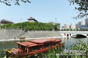 去年五一,护城河水上游览线建国门至朱雀门示范段对外开放。这50万立方米蓄水,全部来自污水处理厂提供的中水。